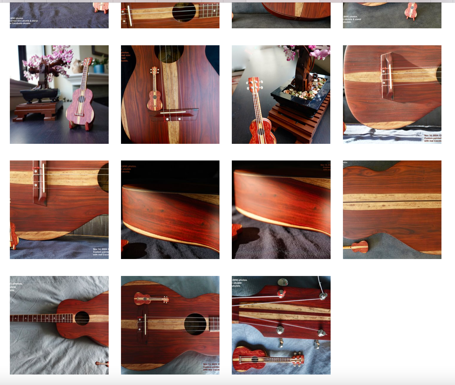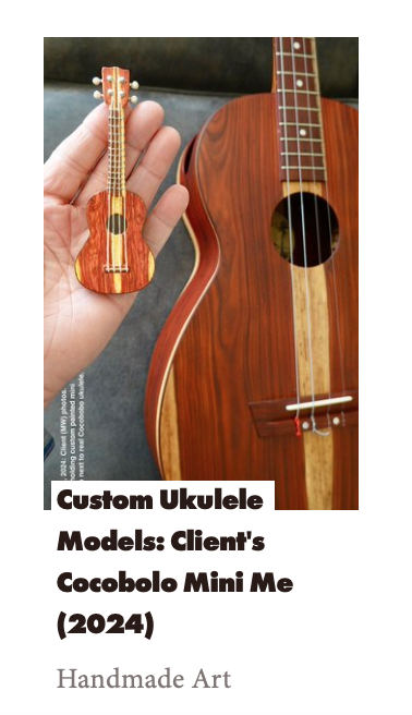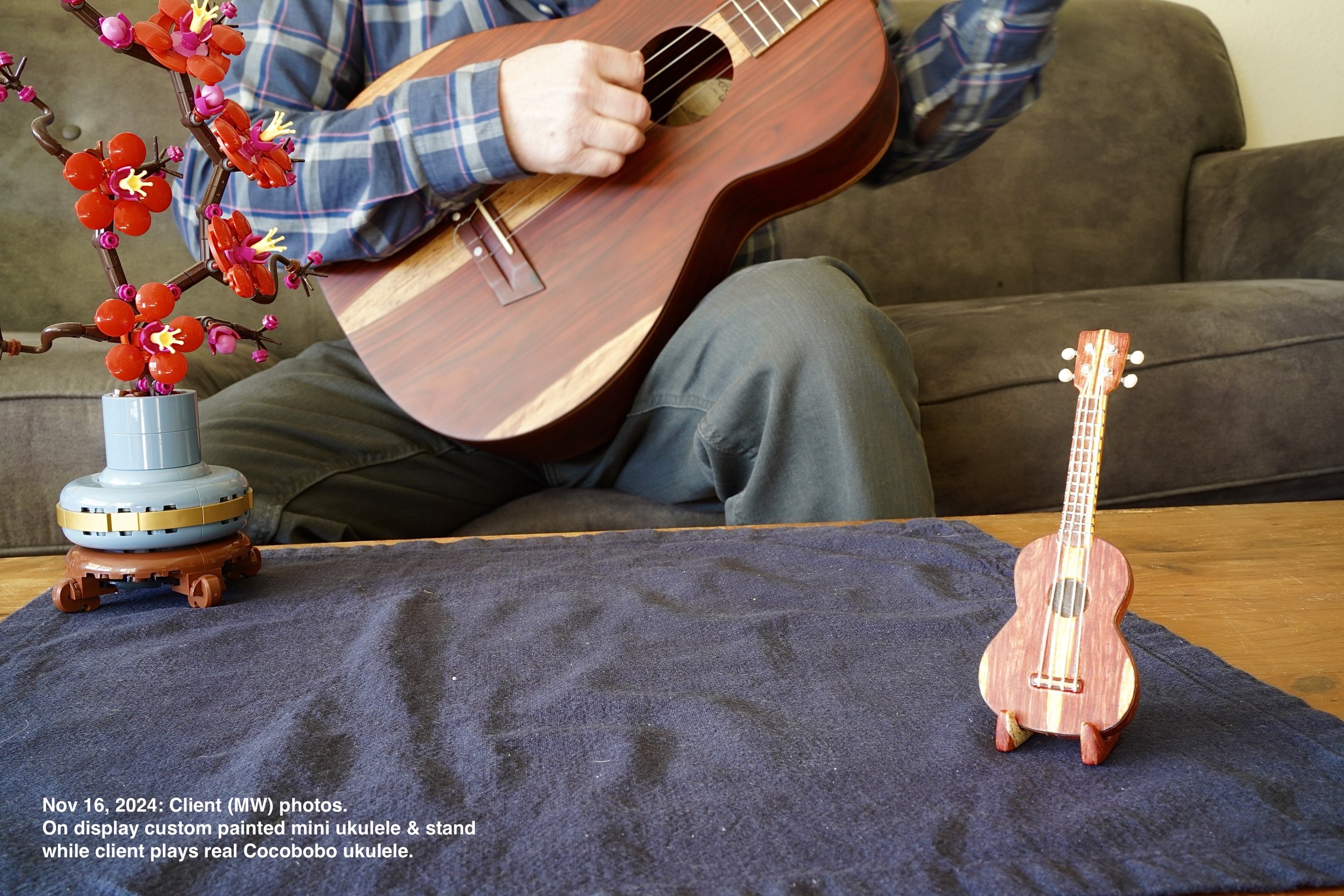 **Feature page: The (MW) Client’s Artistic photos of the Cocobolo Model next to the Real Cocobolo Ukulele are absolutely beautiful…..a must see.