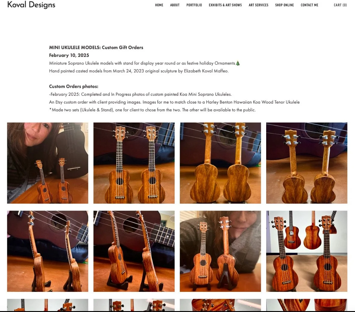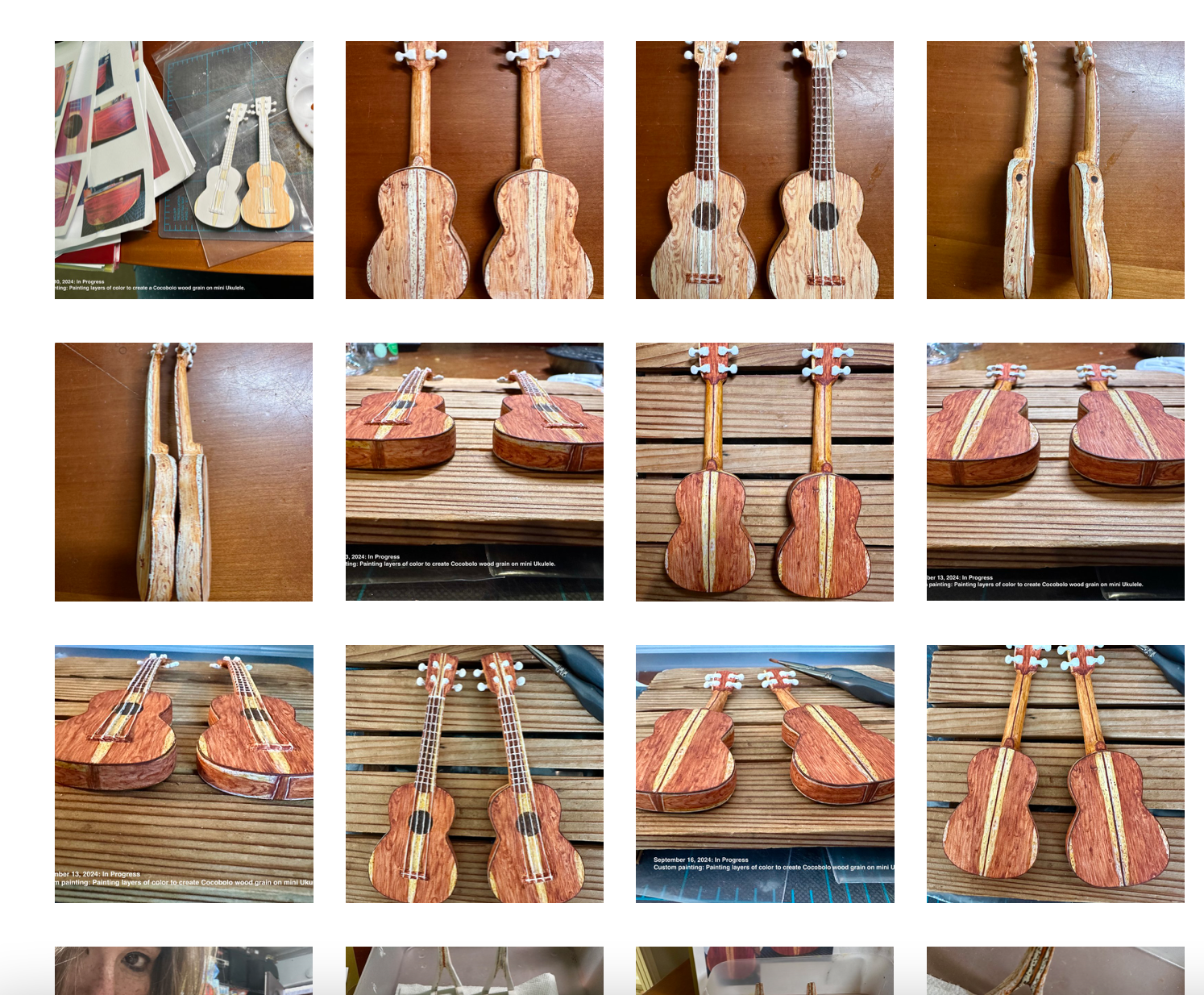 One of the ukuleles was commissioned as a custom order, designed to replicate the beautiful KOA wood grain based on a client-provided reference.
