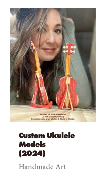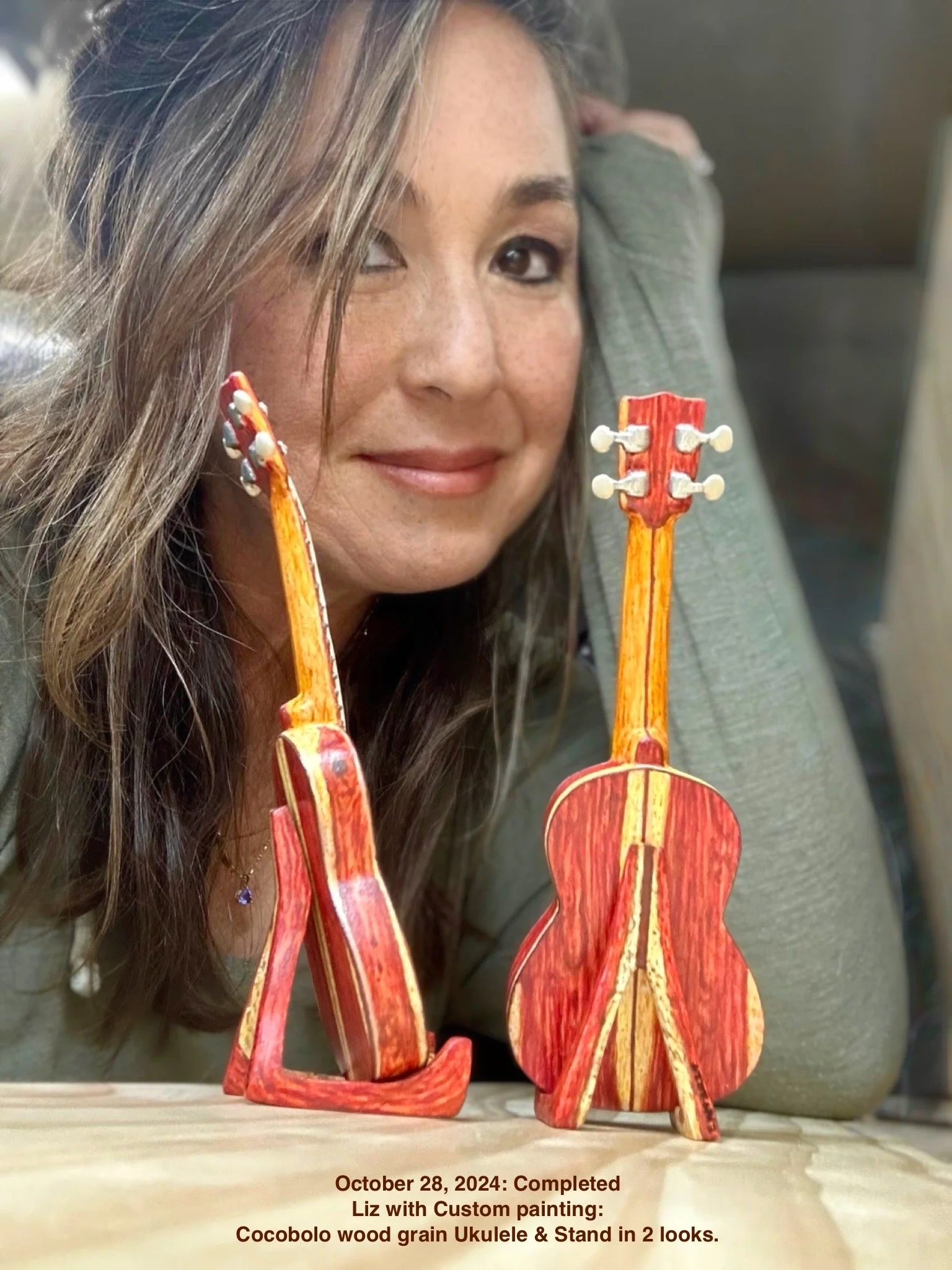 Liz painted 2 Cocobolo wood grain Mini ukuleles.