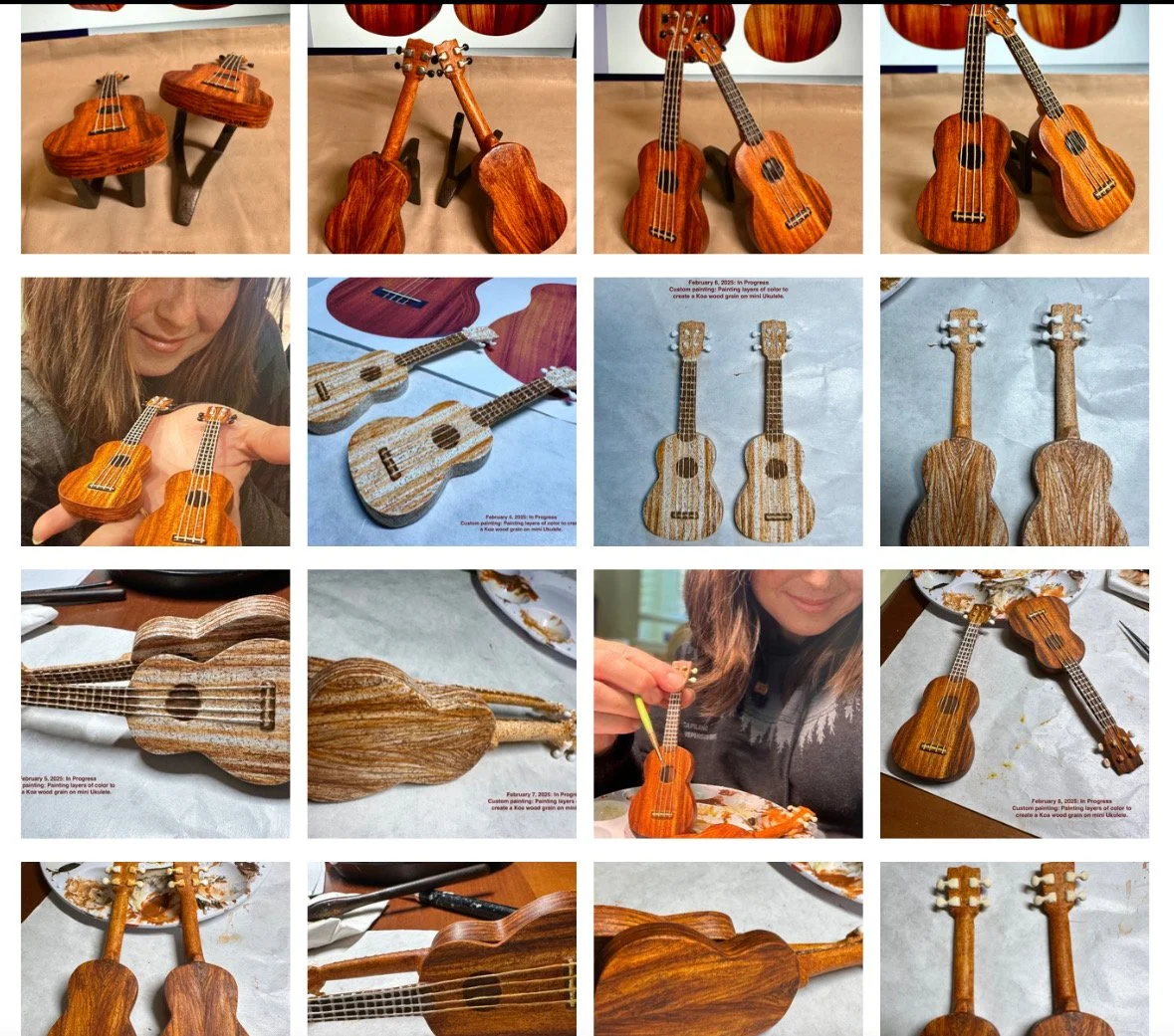 Liz painted 2 Koa wood grain Mini ukuleles.